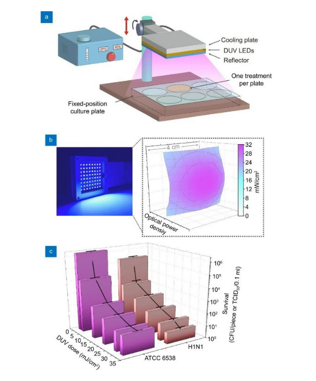 Сообщается, что исследовательская группа использовала твердотельный плоский источник света, чтобы изучить влияние неизвестных факторов, таких как мутант вируса и низкая температура окружающей среды, на дезинфицирующий эффект DUV.Установлено, что в замороженной среде (например, при -50 градусах Цельсия) необходима значительно более высокая доза ультрафиолетового излучения для достижения того же уровня летальности при комнатной температуре.Впервые исследовательская группа создала большую релаксационную отрицательную U-модель биологического фотоэлектрического эффекта для объяснения влияния температурных факторов.